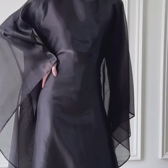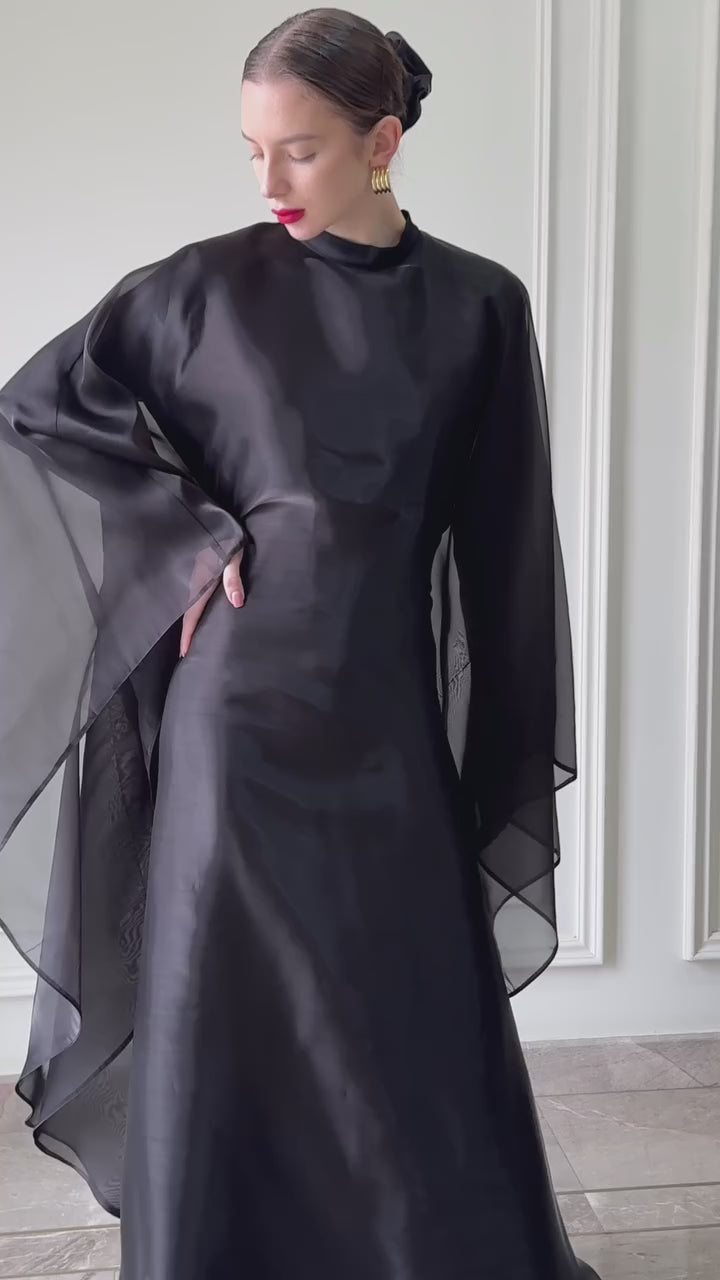Utterly classy and elegant evening dress in abaya-like style. Exuding natural charm and mystery.